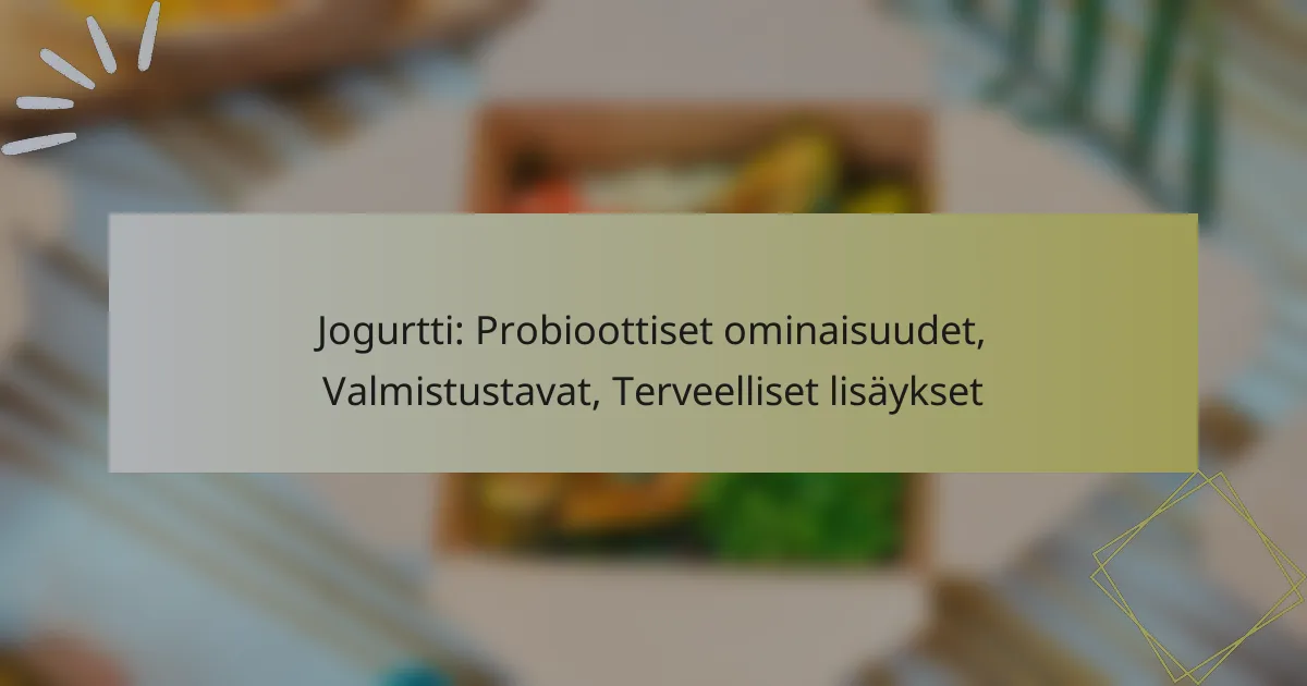 Probioottiset ruoat tarjoavat lukuisia terveyshyötyjä, kuten ruoansulatuksen parantamista ja immuunijärjestelmän vahvistamista. Elävät mikro-organismit näissä ruoissa edistävät suoliston terveyttä ja tasapainoa, mikä voi vaikuttaa myös mielenterveyteen. Yleisimmät probioottiset vaihtoehdot, kuten jogurtti ja kimchi, ovat herkullisia tapoja lisätä näitä hyödyllisiä bakteereita päivittäiseen ruokavalioon.