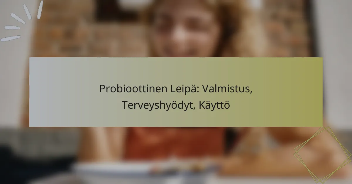 Probioottinen leipä on ravinteikas vaihtoehto, joka yhdistää herkullisen maun ja terveyshyödyt. Sen valmistusprosessiin kuuluu ainesosien valinta, fermentointi ja leipominen, jotka yhdessä luovat leivän, joka tukee suoliston hyvinvointia ja immuunijärjestelmää. Tämä leipä on erinomainen lisä päivittäiseen ruokavalioon, sillä se sisältää hyödyllisiä bakteereita, jotka parantavat ruoansulatusta ja edistävät yleistä terveyttä.
